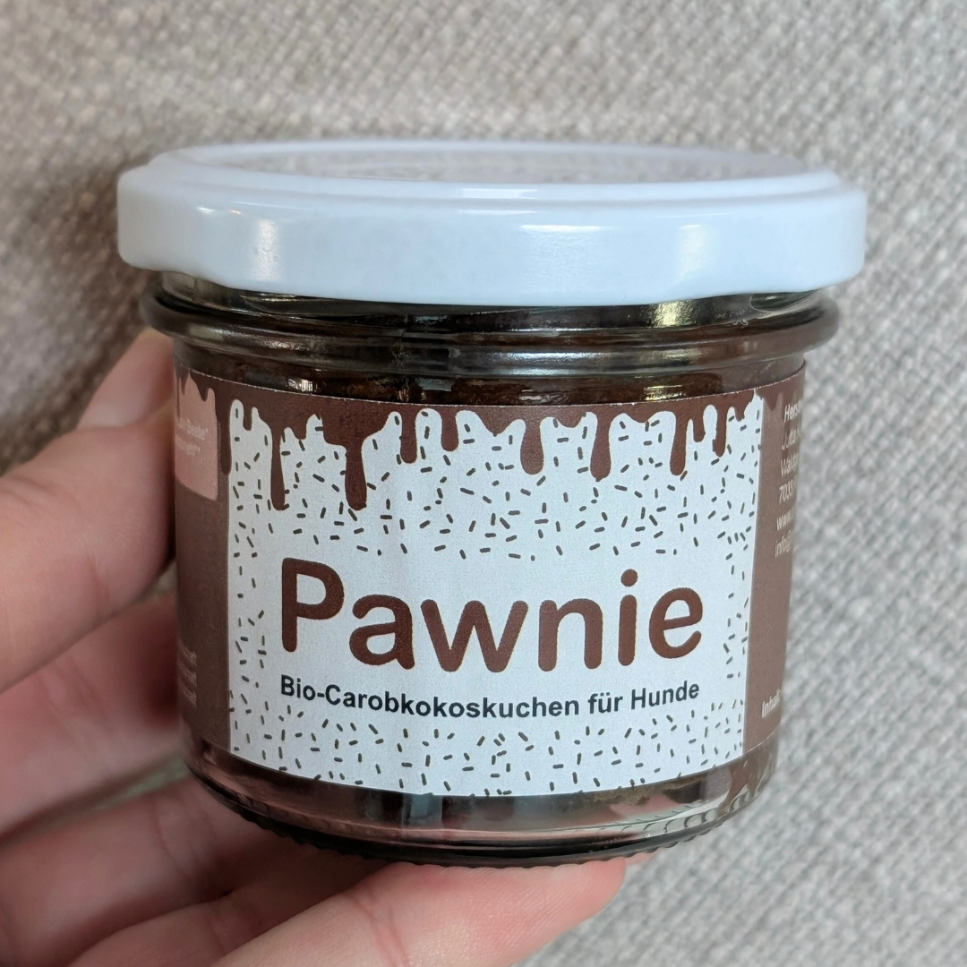 Produziert wird unser Pawnie von Cinnas Bio Leckerlis und da die liebe Jutta Bio-zertifiziert ist, darf das Küchlein auch offiziell ein Bio-Küchlein sein.
